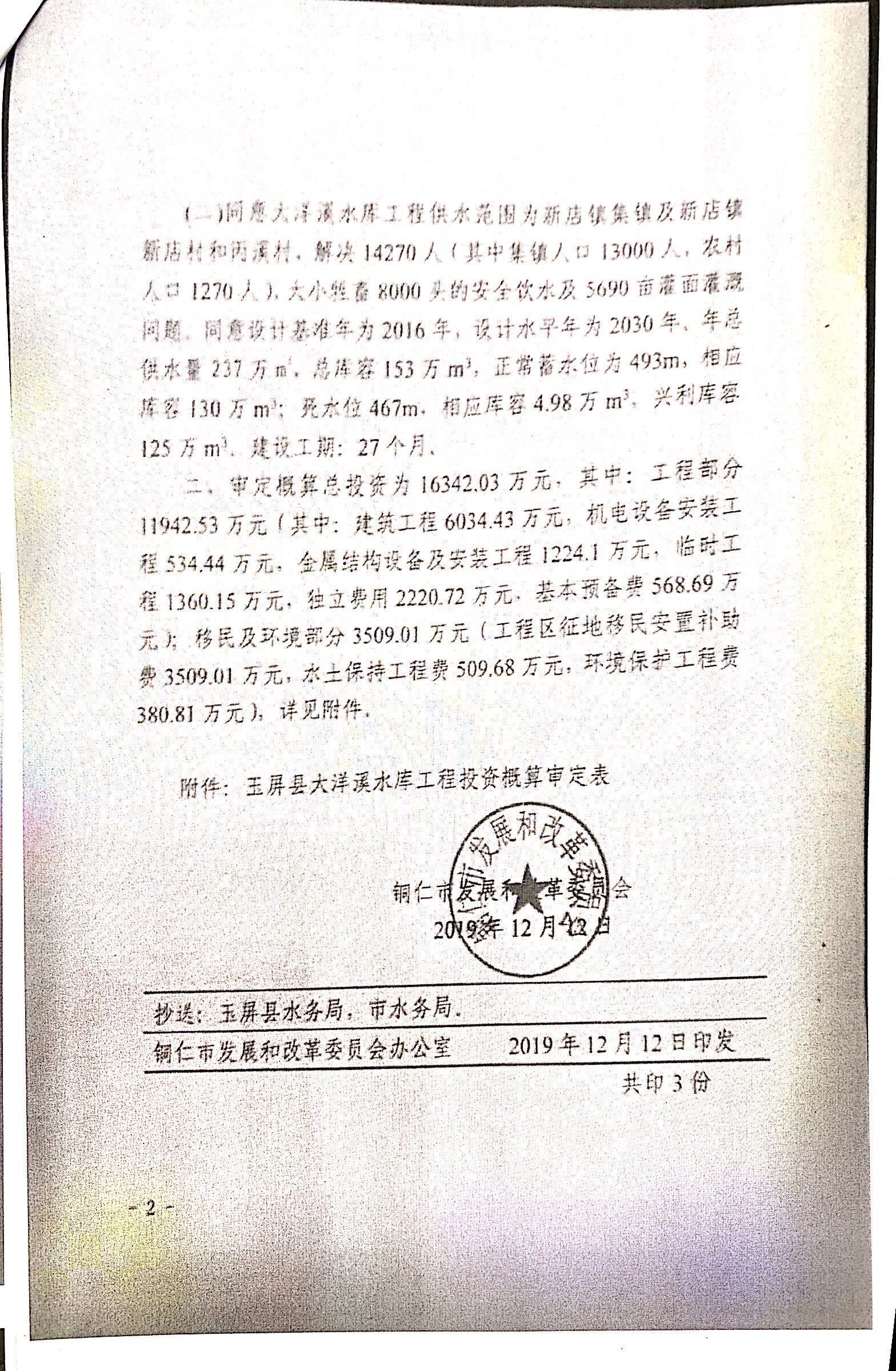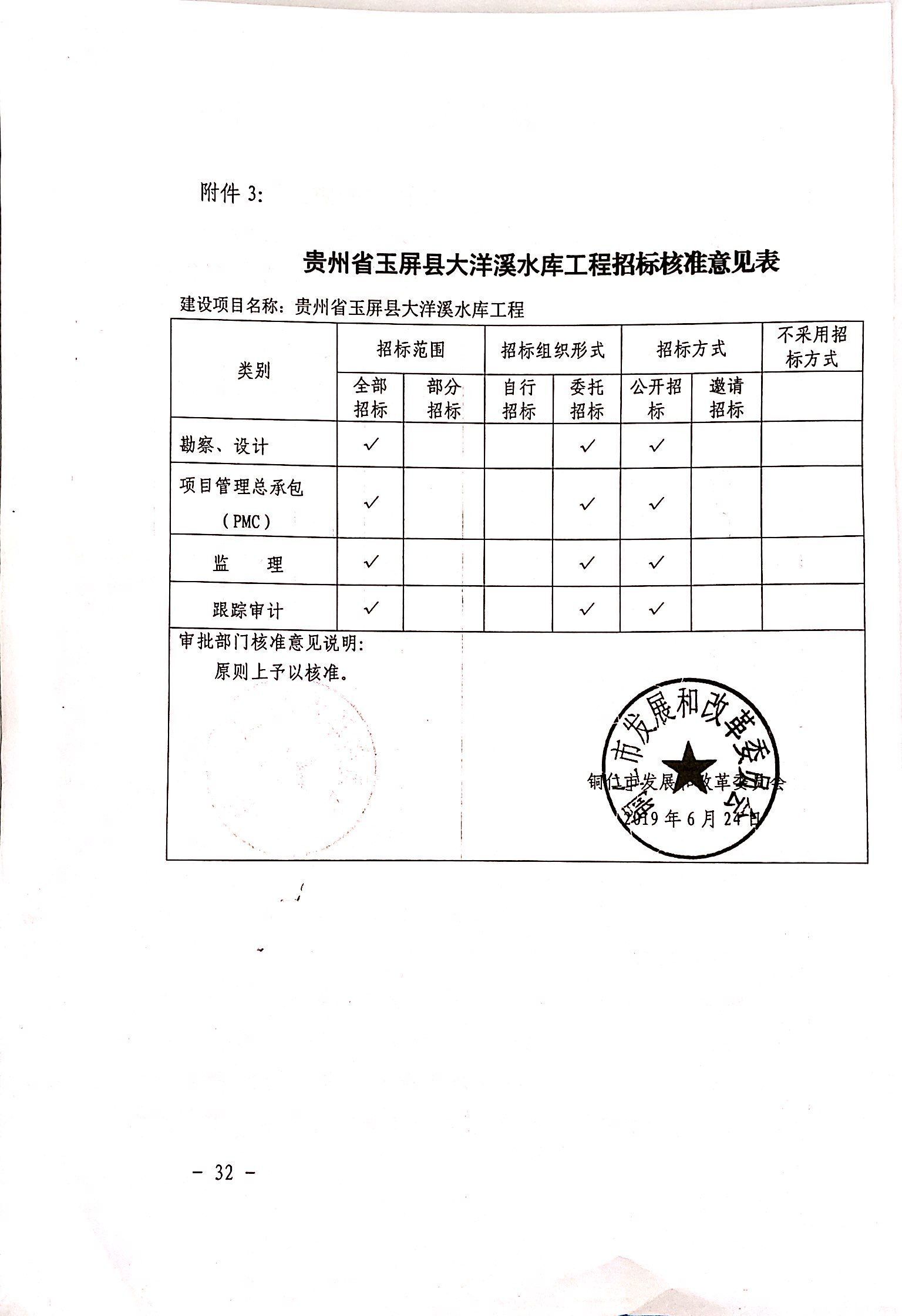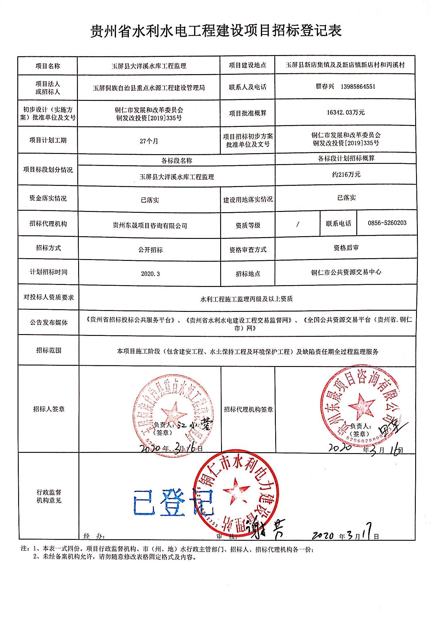 玉屏县大洋溪水库工程监理招标公告