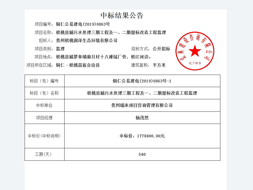 中标单位 | 贵州瑞来项目咨询管理有限公司 | |||||||