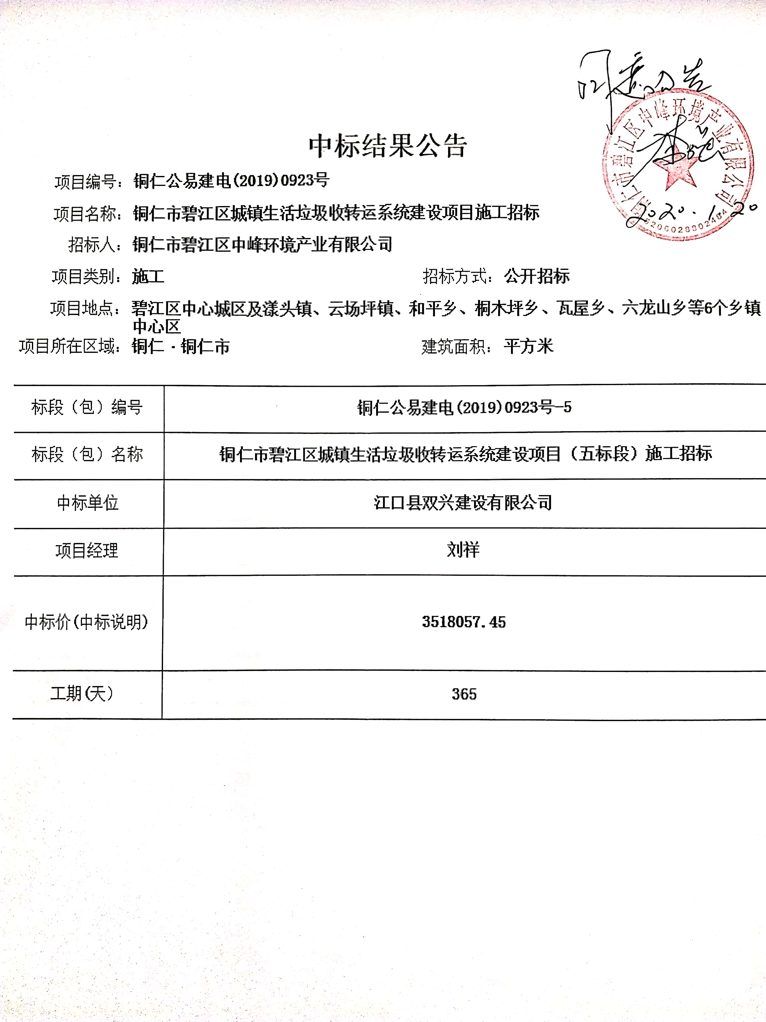 中标单位 | 江口县双兴建设有限公司 | |||||||